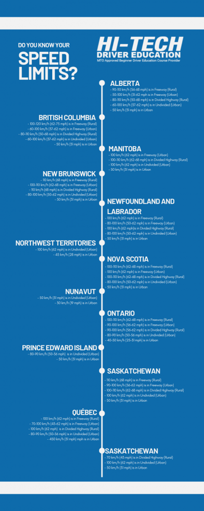 Today we are together on a new Hi-Tech Driver Education blog. We continue to provide education in Ontario with licensed driving instructors. Our last article talked about the 12 Most Common Mistakes to Avoid in the Driving Test. Today we will talk about speed limits. At the end of our blog, we have reserved a section for provinces other than the province of Ontario. You can find out the speed limits of the states in the infographic below. So let’s keep reading.