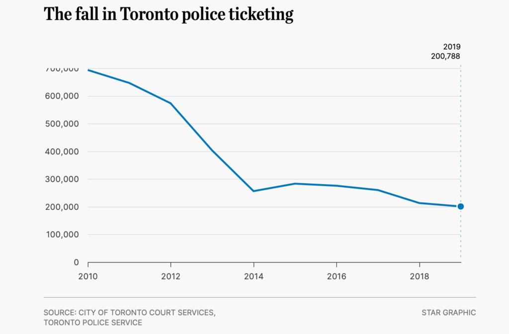According to studies of York University, nearly 200,000 traffic stops occur in from 2015 to 2018. Yet, we can say that the percentage of traffic stops has slowly decreased in comparison to 2010 when there were 700,000 tickets given for violating the laws.